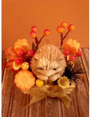 Cette composition délicate met en scène un adorable hérisson niché au cœur d’un décor automnal fait. -